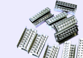 Millar de sellos de acero galvanizado de 1/2" para fleje PET y polipropileno (plastico), sello tipo punteado.